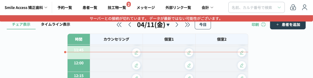 ・サーバーとの接続が切れている場合、エラーを表示するようにしました。