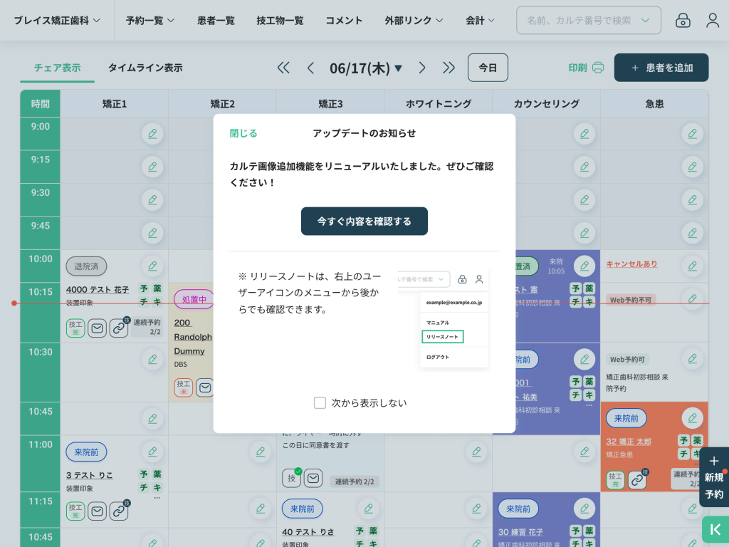 ・連続予約を入れるときは、連続予約を入れている患者名が表示されるようにしました。